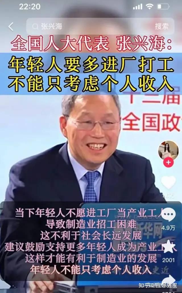 言论:建议年轻人多进厂打工,不能只考虑个人收入。